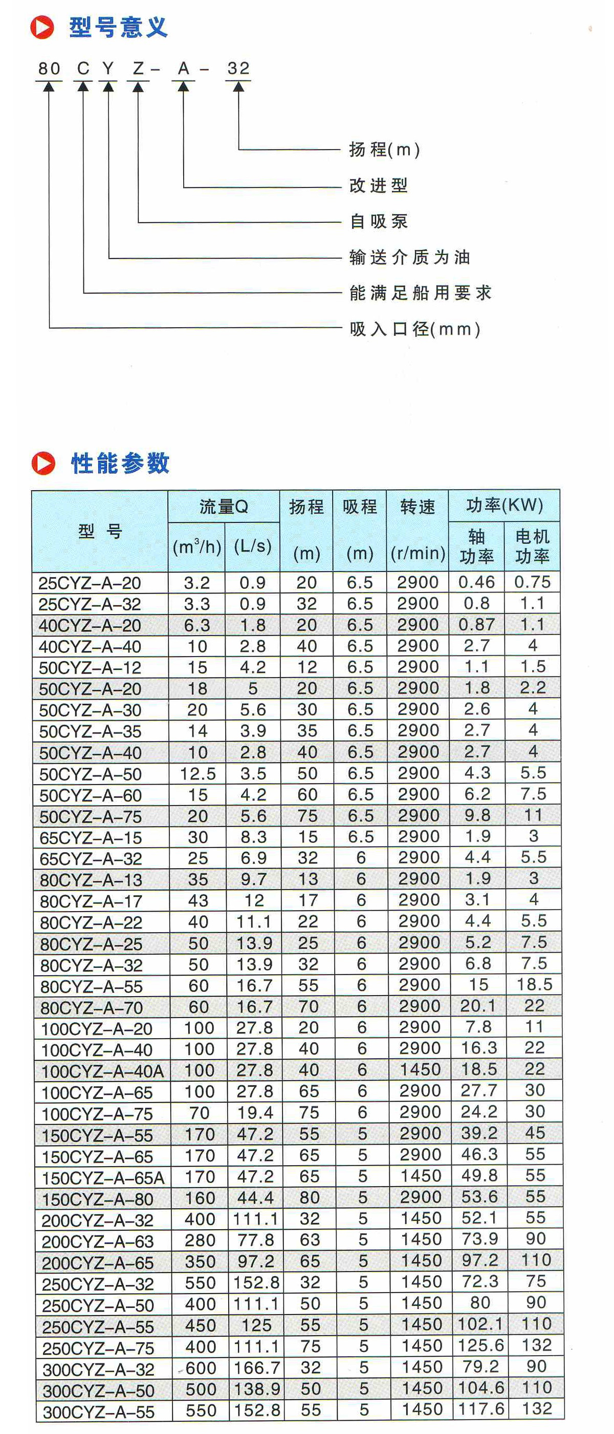 水泵參數說明